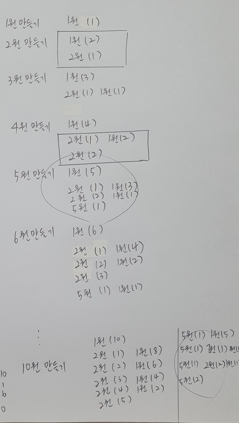= 이전 가치들의 n원을 만들 수 있는 경우의 수