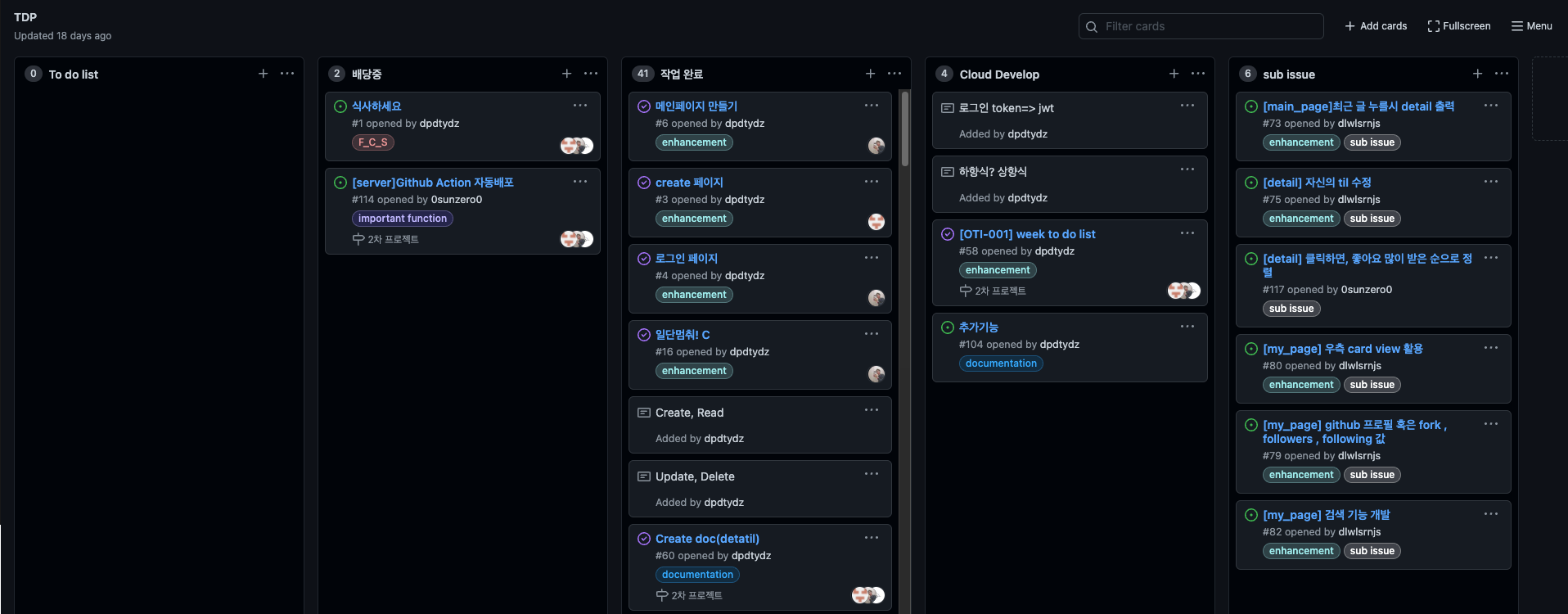 우리 TDP 프로젝트는 여러 이슈를 만들었다.
