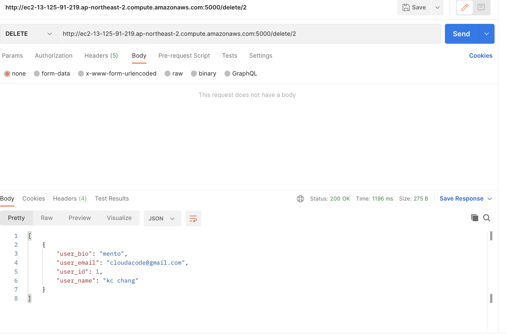 컨테이너로 Python Flask 앱 및 DB 동작 여부 스크린샷