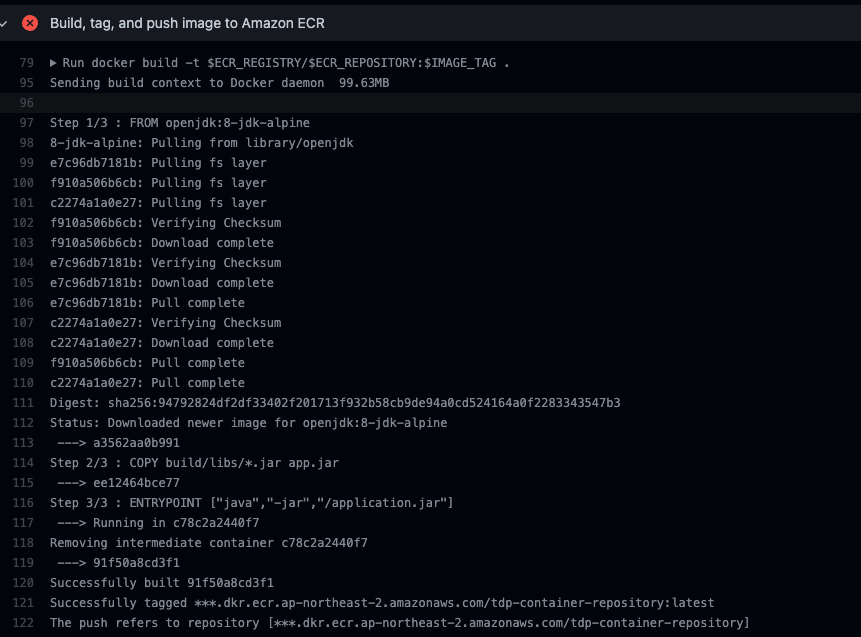 Image가 Elastic Container Registry에 Push 되지 않았다.