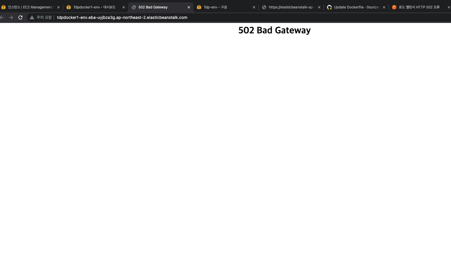 502 Bad Gateway 에러가 발생했다.