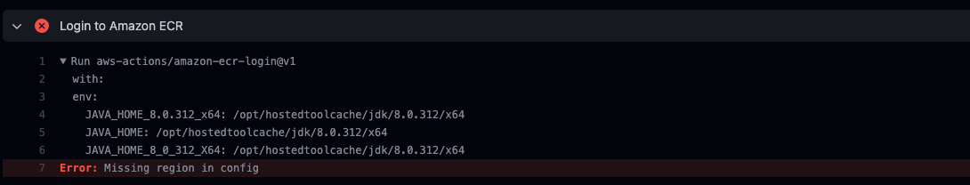 Amazon ECR에 로그인을 해주려면, AWS 사용자 access key 필요한데, 이를 추가해주지 않았다.