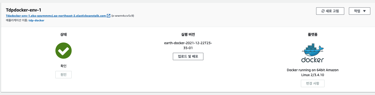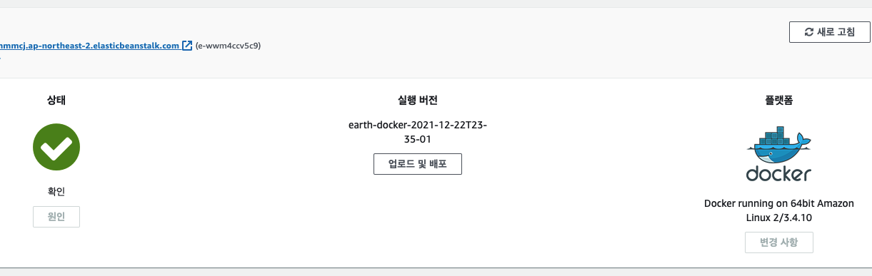 EB의 상태도 정상이고 EB내의 EC2에 Dockerrun.aws.json 파일 배포가 잘 되어있는데