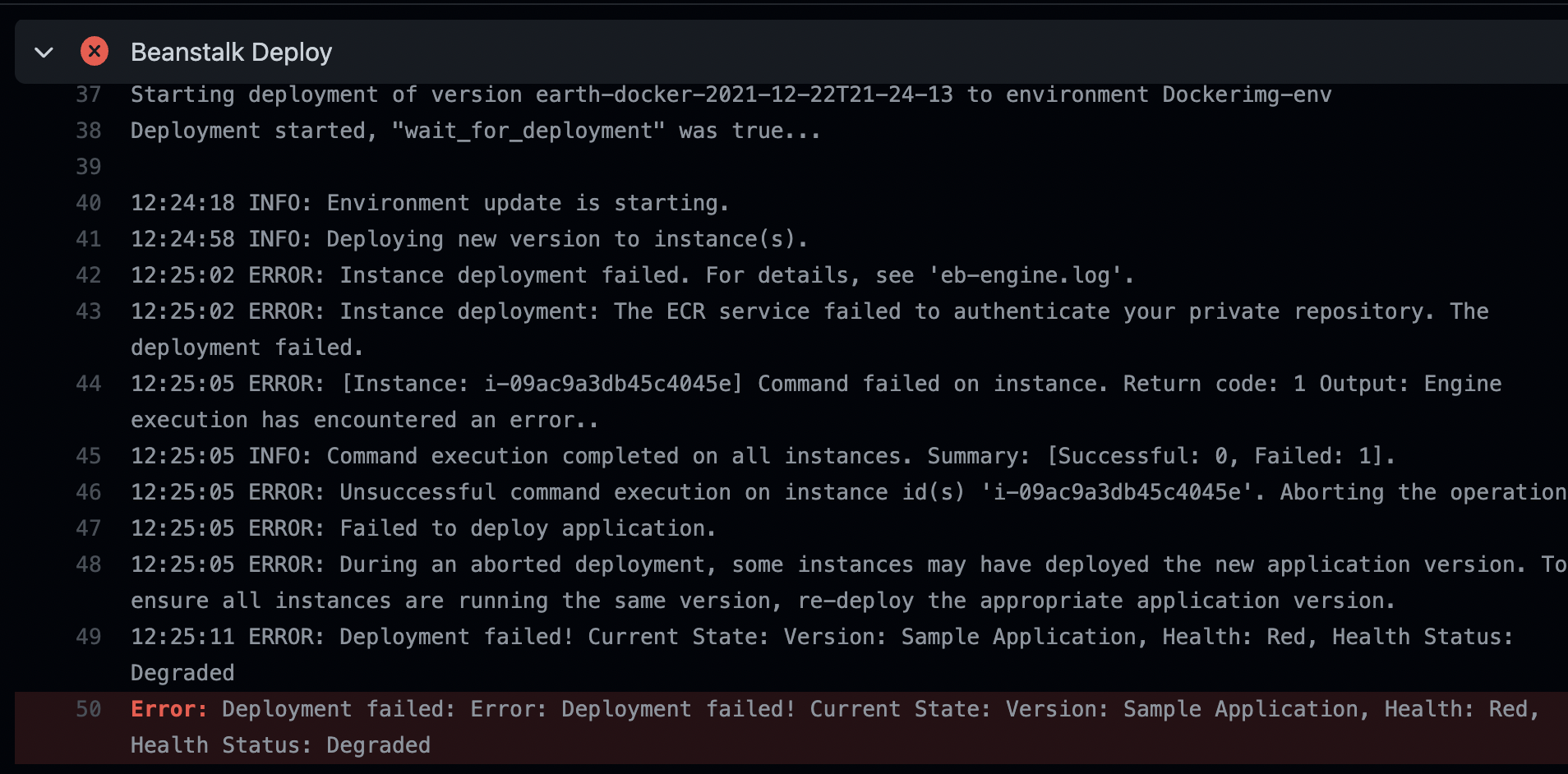 이에 대한 해결책을 구글링해보니, EB 재부팅하면 된다고해서 재부팅해주었고 EB에 배포되는 것이 정상적으로 되었다.